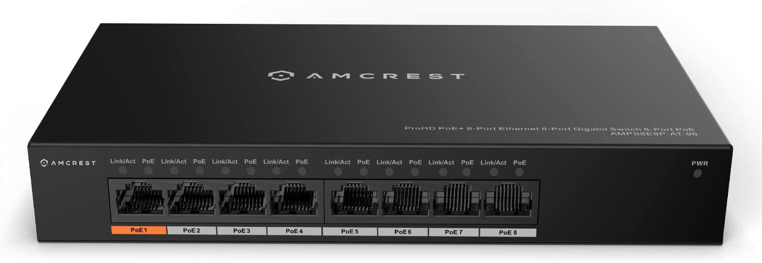 Amcrest 8-Port POE+ Power Over Ethernet POE Switch with Metal Housing, 8-Ports POE+ 802.3af/at 96w (AGPS8E8P-AT-96)