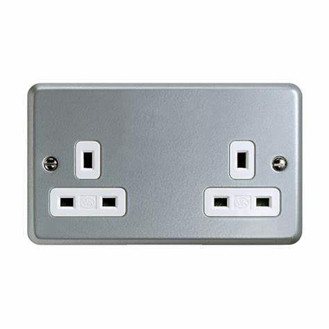 MK 13A 250V 2G Metal Clad Plus Socket Outlet. Unswitched. K850ALM. Complete with Surface Metal Clad Box.